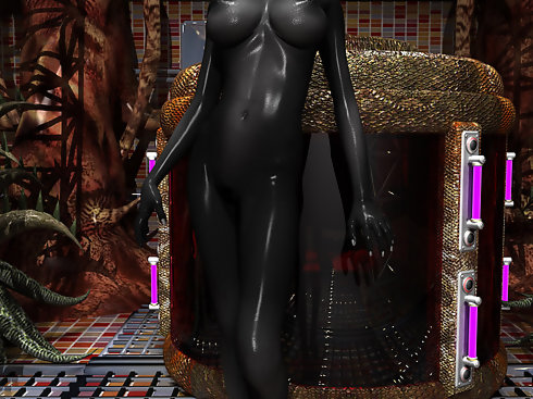 Attractive extraterrestrial with big tits spreads her cunt.