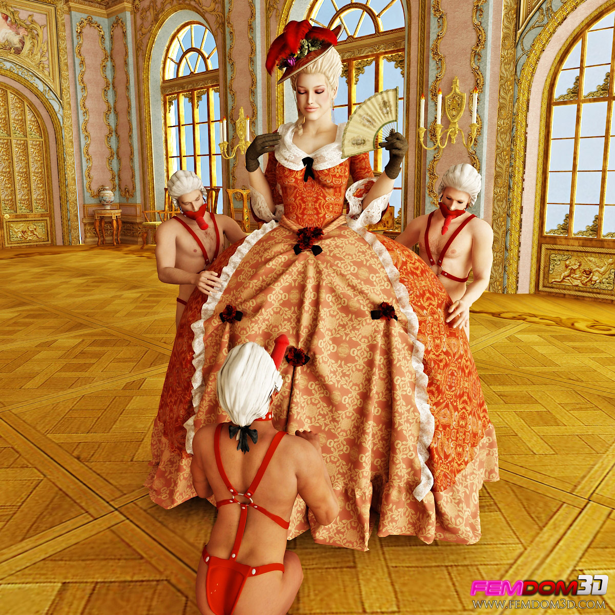 Lusty domina is pleased when her servants follow all her orders.