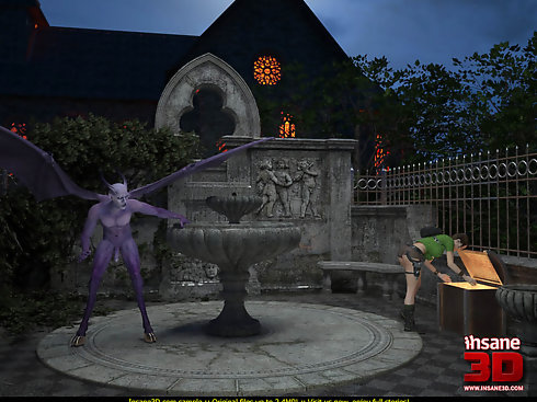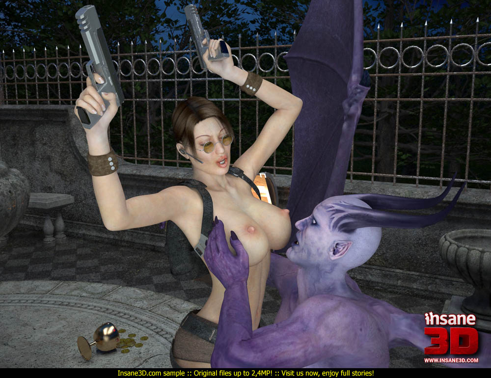Cute Clara fucked by a bat-like monster after tomb raiding