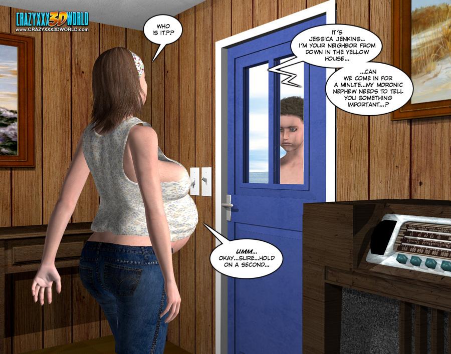 Crazy 3d porn. Horny boy wants to fuck his pregnant aunt and showing rockhard cock to her