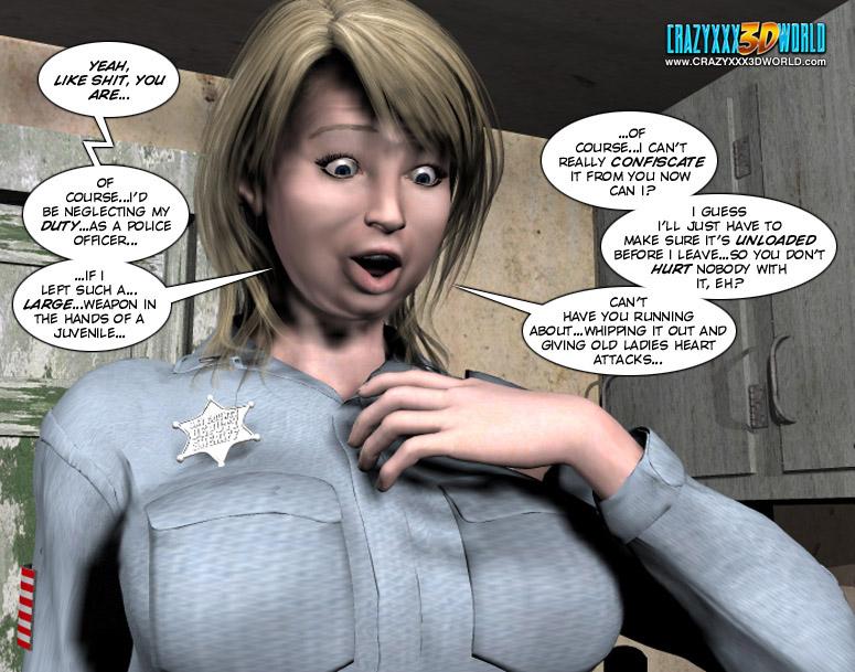 3d cartoon porn of a police officer intending to arrest the guy but seducing and fucking with him instead