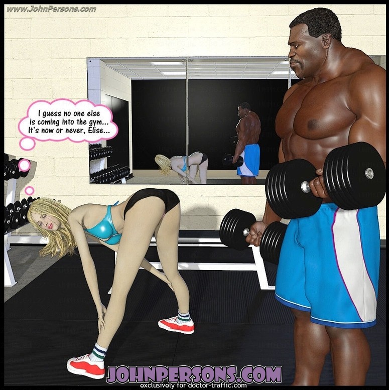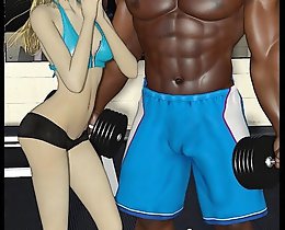 Mindblowing 3d sex comics with appetizing fit cutie double fucked with black dicks in the gym