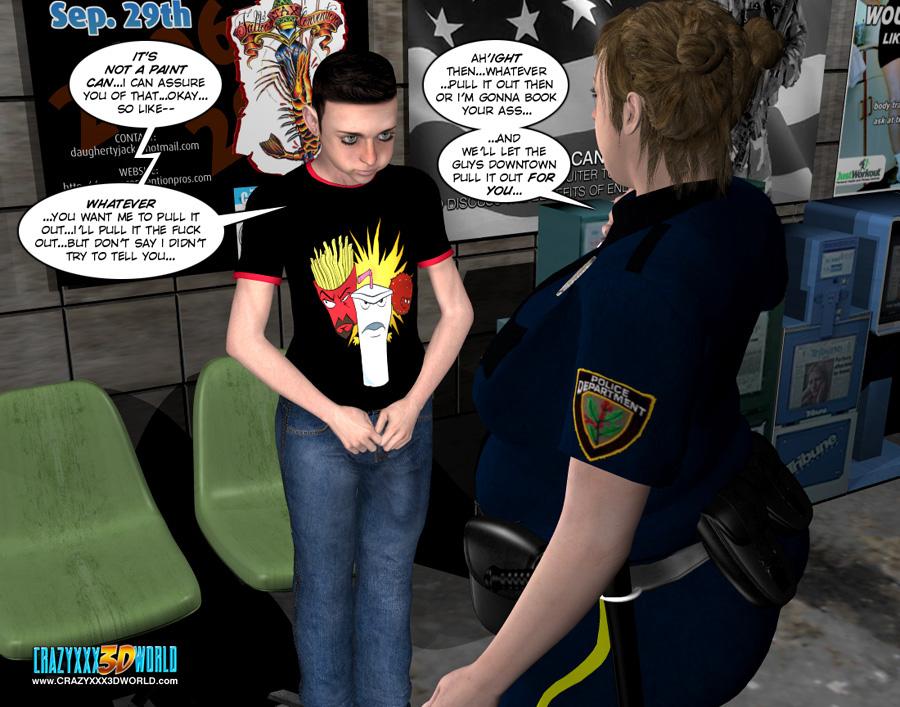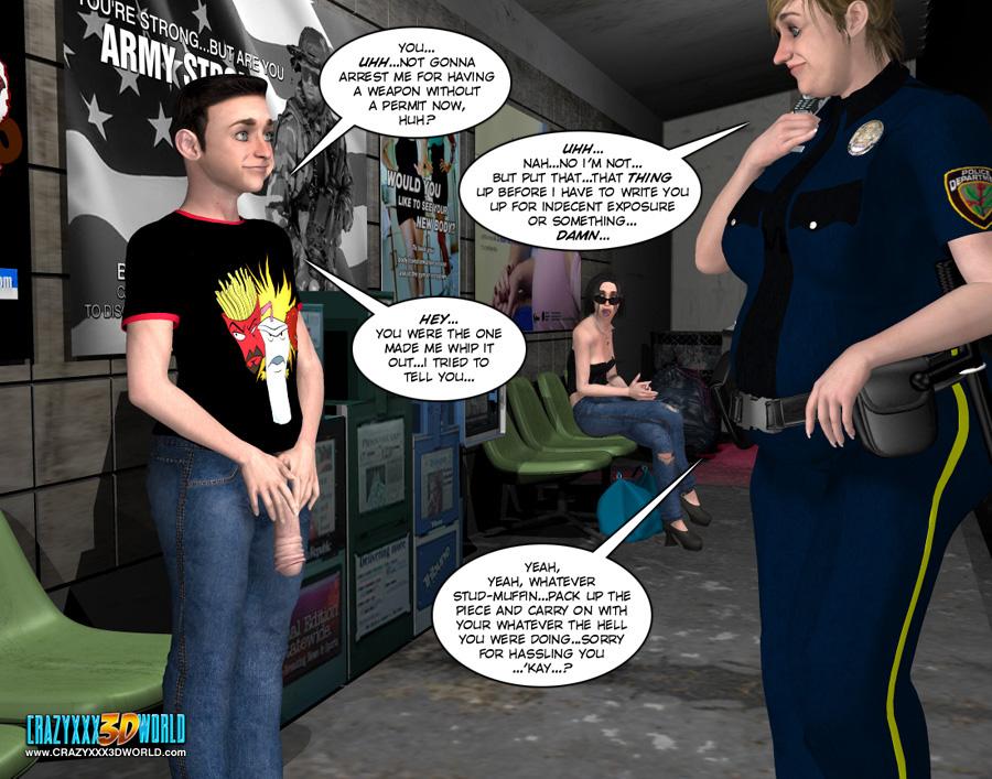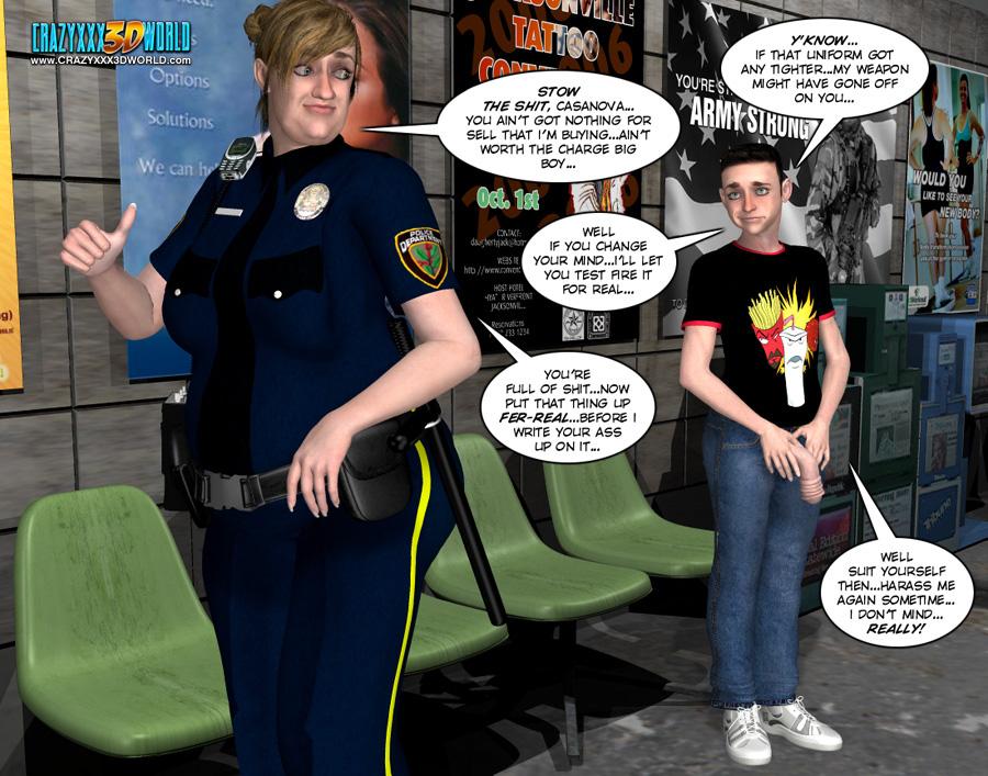 crazy 3d xxx world police officer came to young boy and flash her tits in public